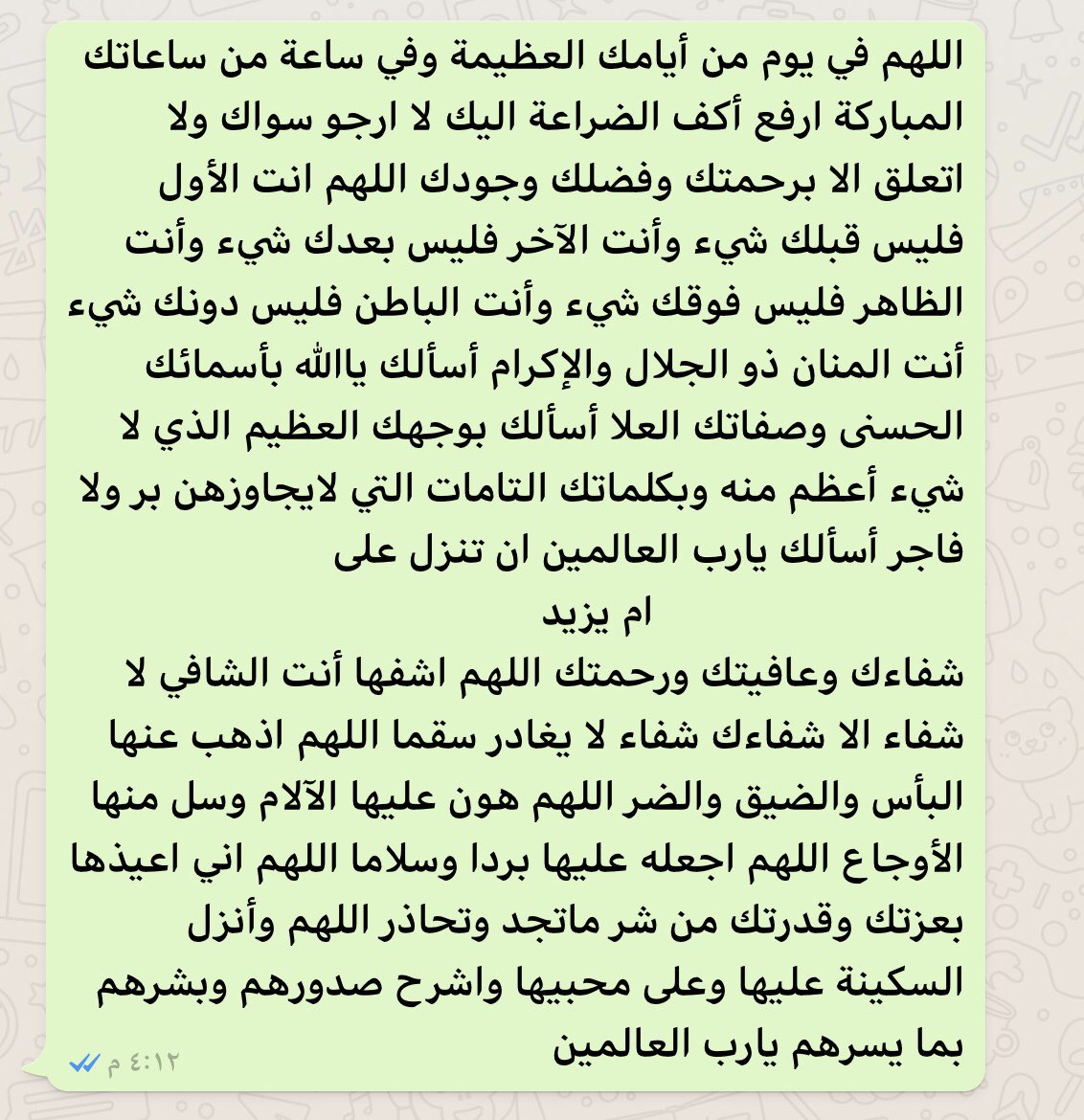 بو يزيد On Twitter اسأل الله العظيم رب العرش الكريم ان يشفيها شفاء لا يغادر سقما طهور ان شاء الله