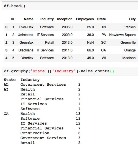 Daily Python Tip On Twitter Find Frequency Of Values In Pandas Dataframe With Value Counts Method Df Groupby State Industry Value Counts Python Https T Co Q1j1sczciw