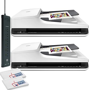 Amazon Com Hp Scanjet Pro 2500 F1 Flatbed Scanner 1200 Dpi Optical 24 Bit Color 8 Bit Grayscale 20 Ppm Usb With Power Strip Surge Protector Electronics Basket Microfiber Cloth 2 Pack Saver Electronics