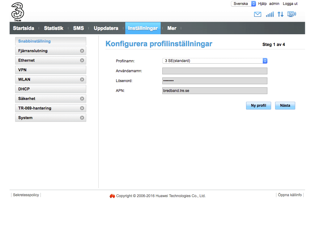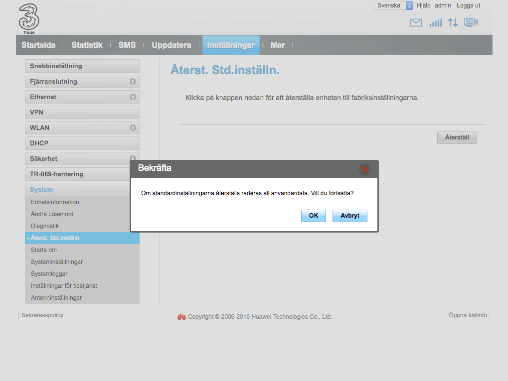 Fabriksaterstall Mobil Router