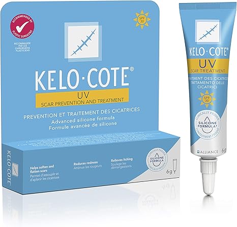 6g gel uv coverage. The high protection sunscreen helps ensure that scarring is shielded from uv exposure. Kelo cote is patented transparent self drying silicone gel technology which improves the appearance of scars and prevents excessive scar formation. Kelo cote advanced formula scar gel with added spf30 protection is intended for the management of new and old up to 4 years hypertrophic and keloid scars resulting from.